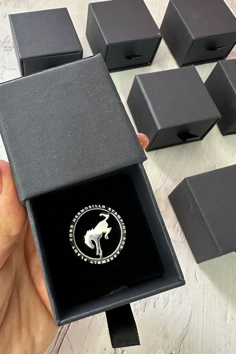Pin plata 10 kilates 5cm estuche plástico personalizable en molde troquelado